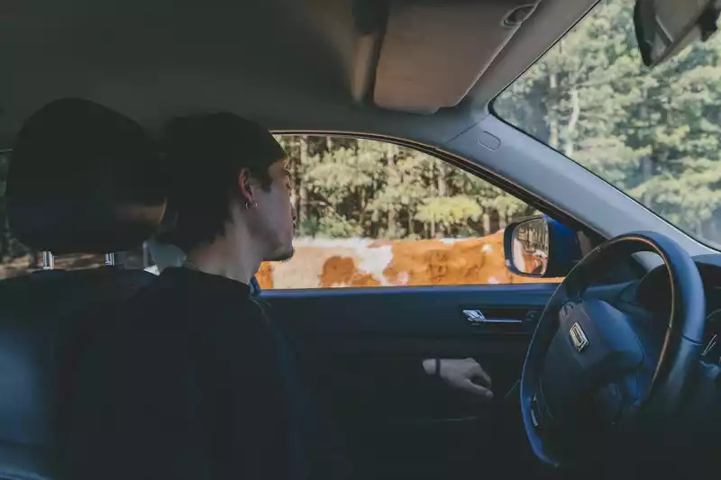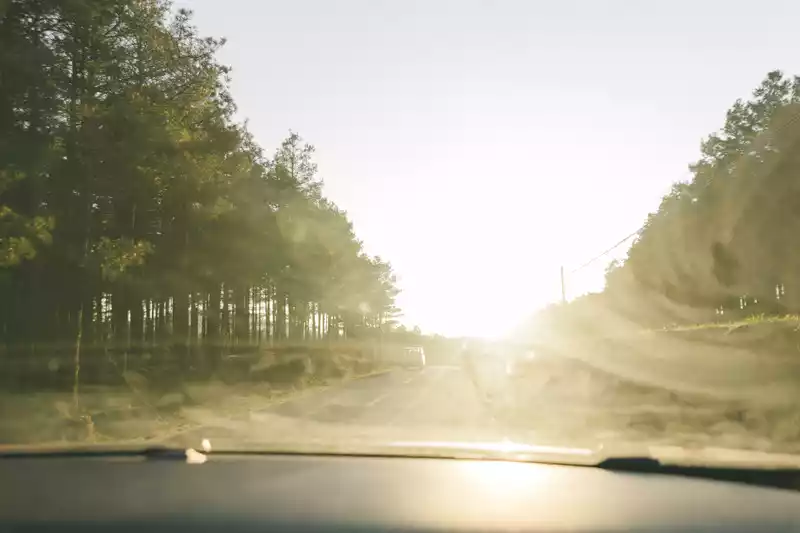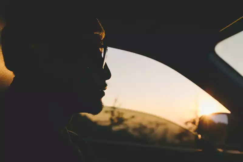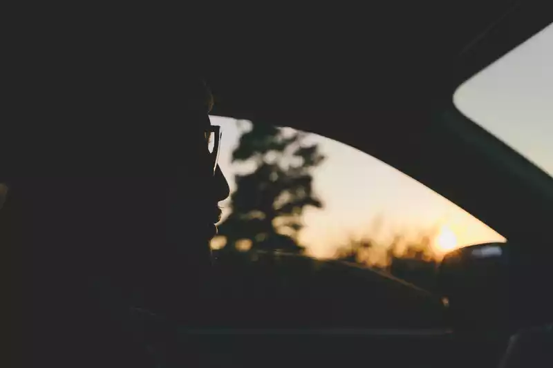 The sun leaves us in the car with only silhouettes.