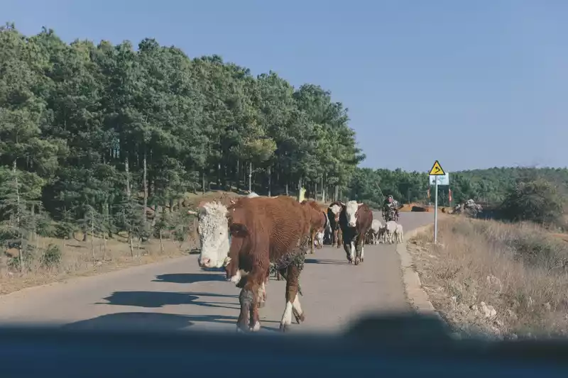 Yunnan really sees cattle and sheep everywhere, you don't necessarily have to go to the grassland of Shangri-La to have cattle and sheep, and when you come to your senses, there is already a group of cattle and sheep driven away by dogs in front of you.