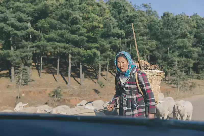 driving for about an hour and a half from Kunming, we took the wrong path up the mountain and drove an extra 40 minutes on the gravel road to get to our main road. As soon as I woke up, I opened my eyes and saw the farmland that had not been cultivated in winter, and the grass appeared slightly, making everything look full of vitality.