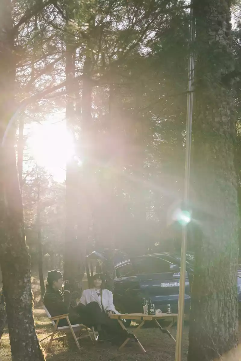 After going around a large circle of mountain roads, I finally found a relatively gentle place, the two of them set up tables and chairs, and the sky was so tired that they gave up. And the sunlight at this moment can shine on the people who are warm.