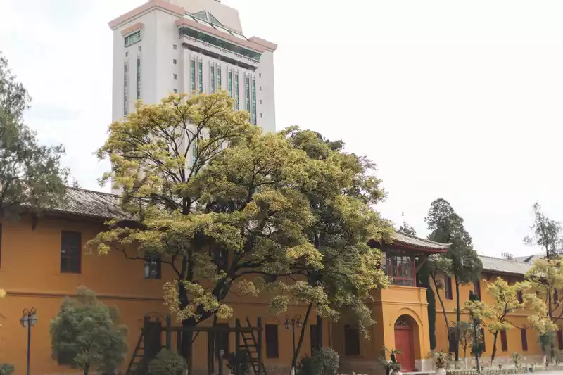There are many historical houses in Cuihu, and I bet that 90% of Kunming people have never entered the martial arts hall, this yellow-looking military academy is located on the main street of Cuihu, and before that, I was also the 90% of Kunming people.