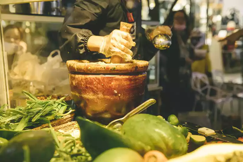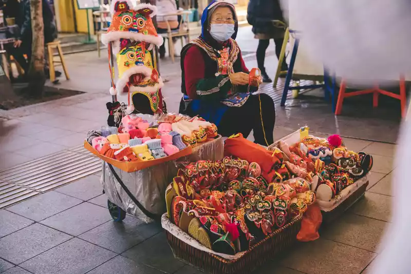 From local tapas to Mexican tacos, streets to alleys, there is something for the taste buds of the world's cuisines. There are also various craftsmen on the side of the road, and an old lady carefully weaves tiger head shoes worn by children.