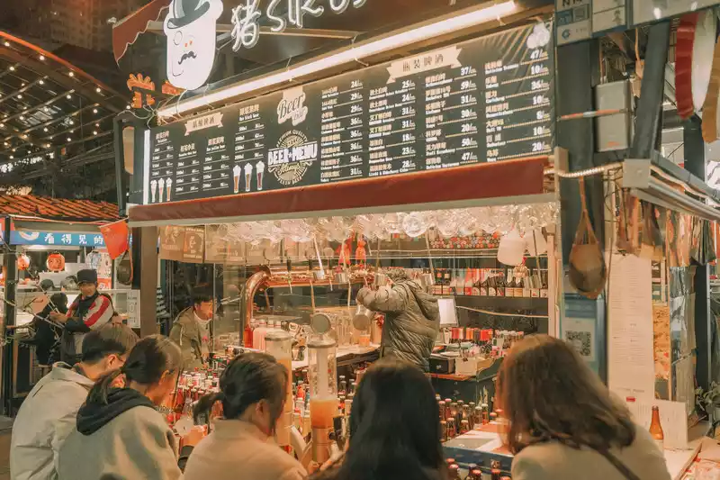 Beer, barbecue, fondue, these foods and alcohols that stimulate the taste buds slowly ferment at night with the joy of youth. At night, Nanqiang Street is lit up, and lanterns are hung everywhere, which is very New Year's flavor.