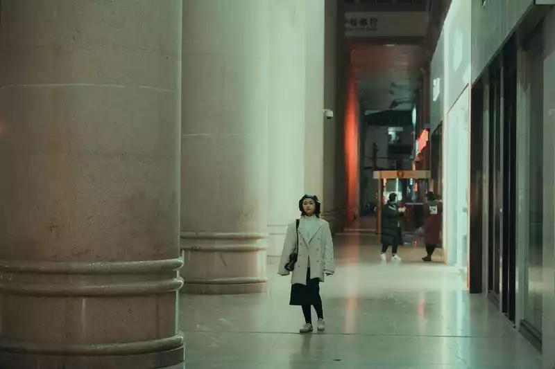 (On the way to the Wine Glass Building, the ground is illuminated and the hall is bright).