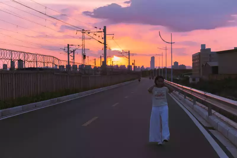 Waiting for a train to pass by, this moment is healing, especially at dusk, and it is beautiful to sit here for ten minutes.