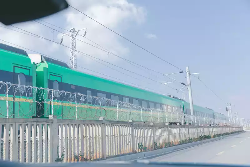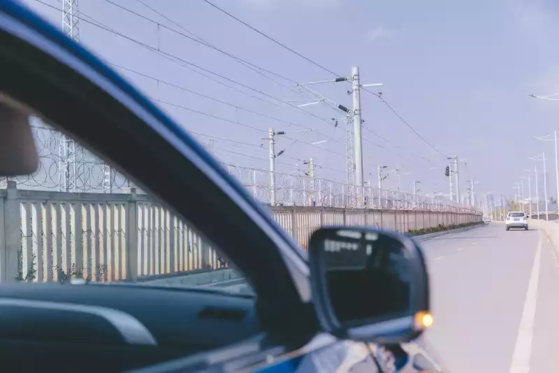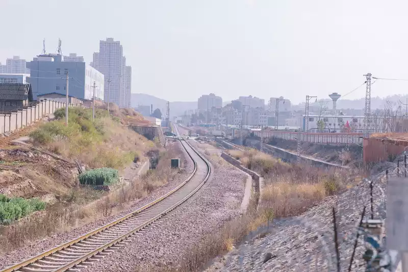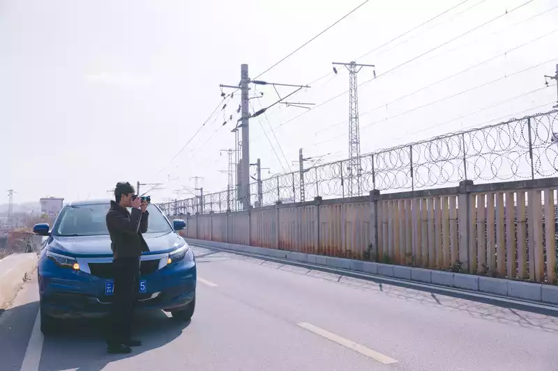 This is a highway that we found in the urban area that can run parallel to the high-speed rail tracks, which is regarded as an internal road of a unit, but foreign vehicles can also pass by. There were not many cars and pedestrians passing by. Just next to the second ring road, you can see the tracks of the high-speed rail by navigating directly to the middle road of the pavilion.