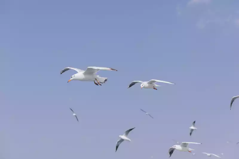 As usual, the people selling gull food can meet one every three meters, and there are also old mages on the roadside who hold cameras everywhere and shout to take pictures with seagulls.