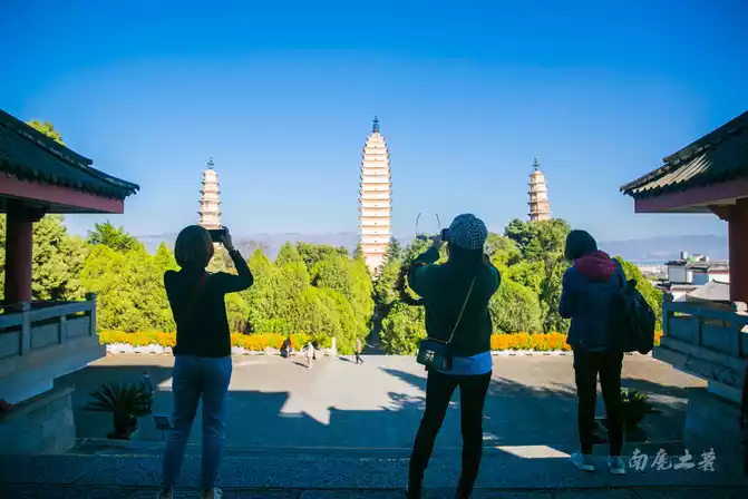 The three pagodas of Chongsheng Temple are the original towers, but they have been repaired, located at the entrance of the scenic spot, particularly eye-catching, the three pagodas are composed of one large, two small and three pavilions, the local people call it "Wenbi Tower", historical materials are verified to be built in the Nanzhao Fengyou period, is a witness to the history of Dali. It is estimated that Nanzhao Dali Buddhism was closely related to the Central Plains Buddhism at that time, absorbing more mainland skills and culture, and also showed that the Cangshan Erhai region was economically developed at that time, and the productivity and technical level were high.