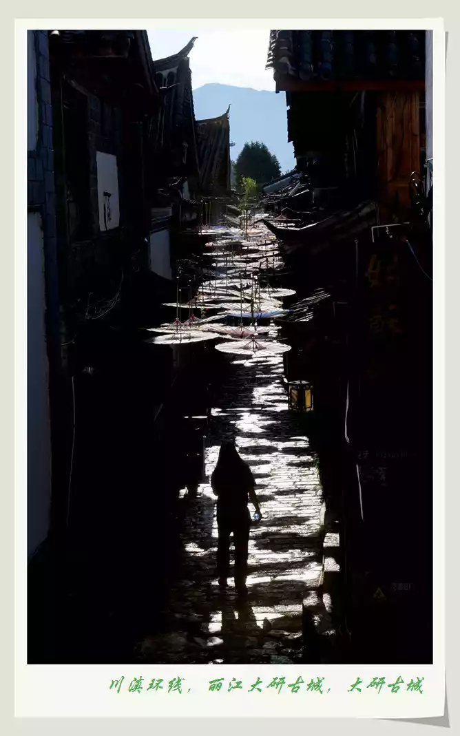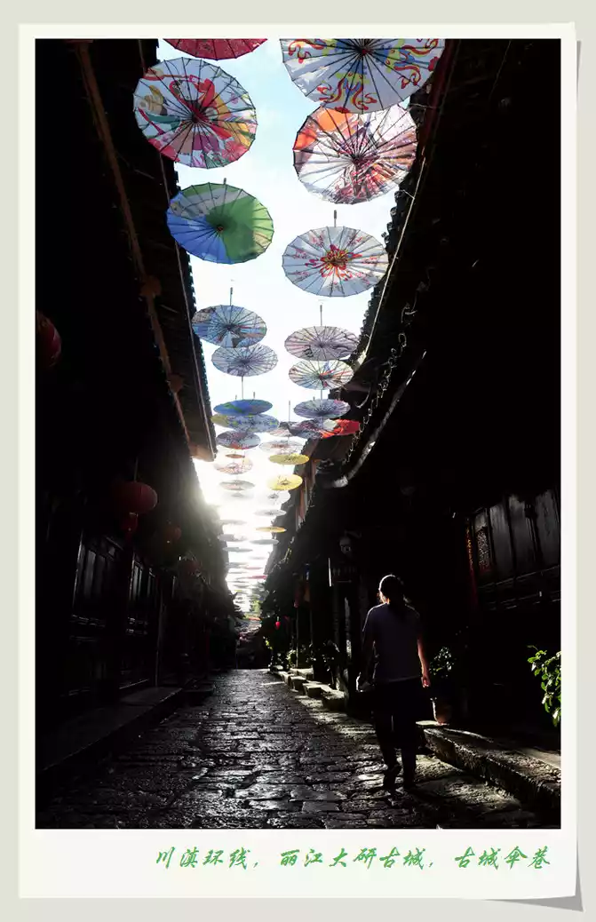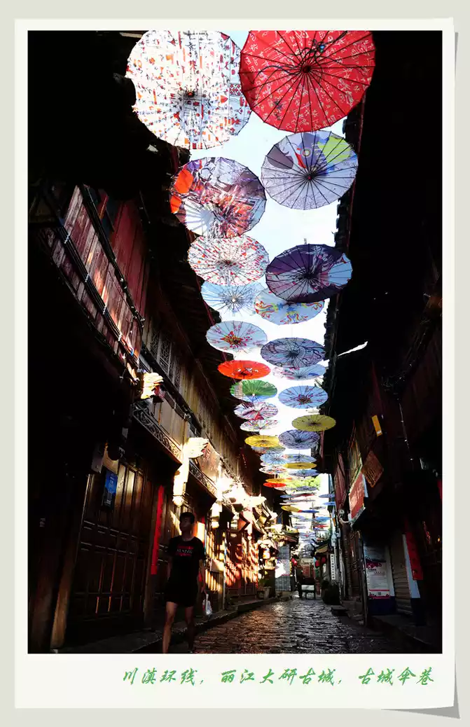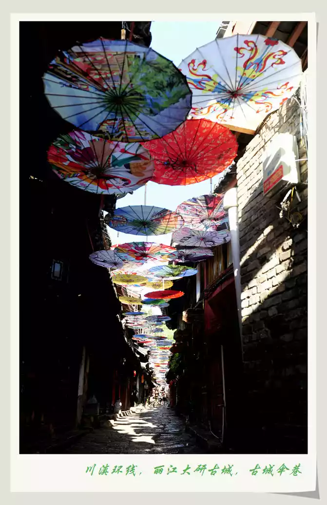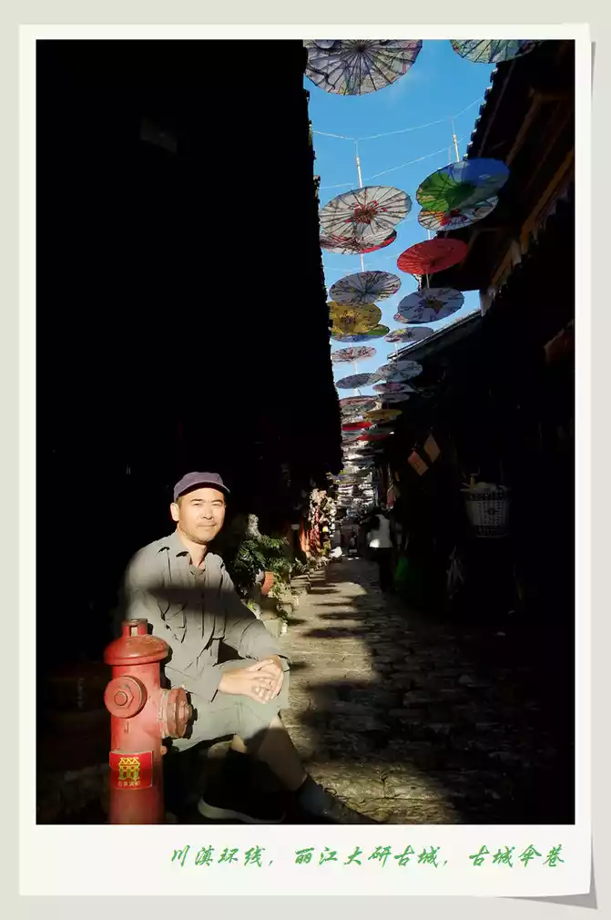 After seeing the whole scenery, a straight road goes down to Sifang Street. The ancient city of Dayan in the early morning is still very interesting, and the most impressive thing is the umbrella scenery in the alley, which is evidenced by the picture, and there is no need to repeat it.