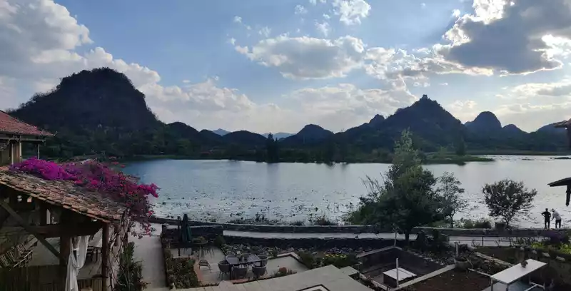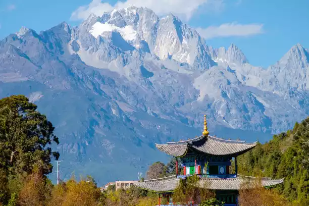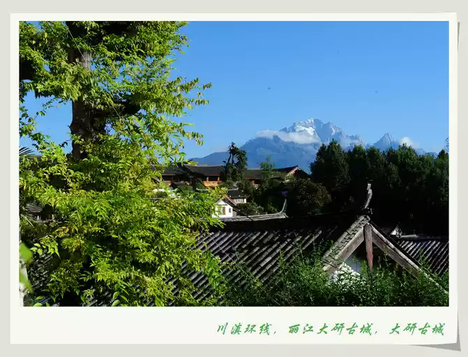 To see the Jade Dragon Snow Mountain in the ancient city of Dayan, you have to go to Lion Rock. With yesterday's experience, I didn't get lost this time, I hardly met anyone along the way, and I quickly arrived at the gate of Lion Rock Park while walking. Turn right 20 meters before the entrance of the park and there is a house, and you can clearly see the Jade Dragon Snow Mountain at the door.