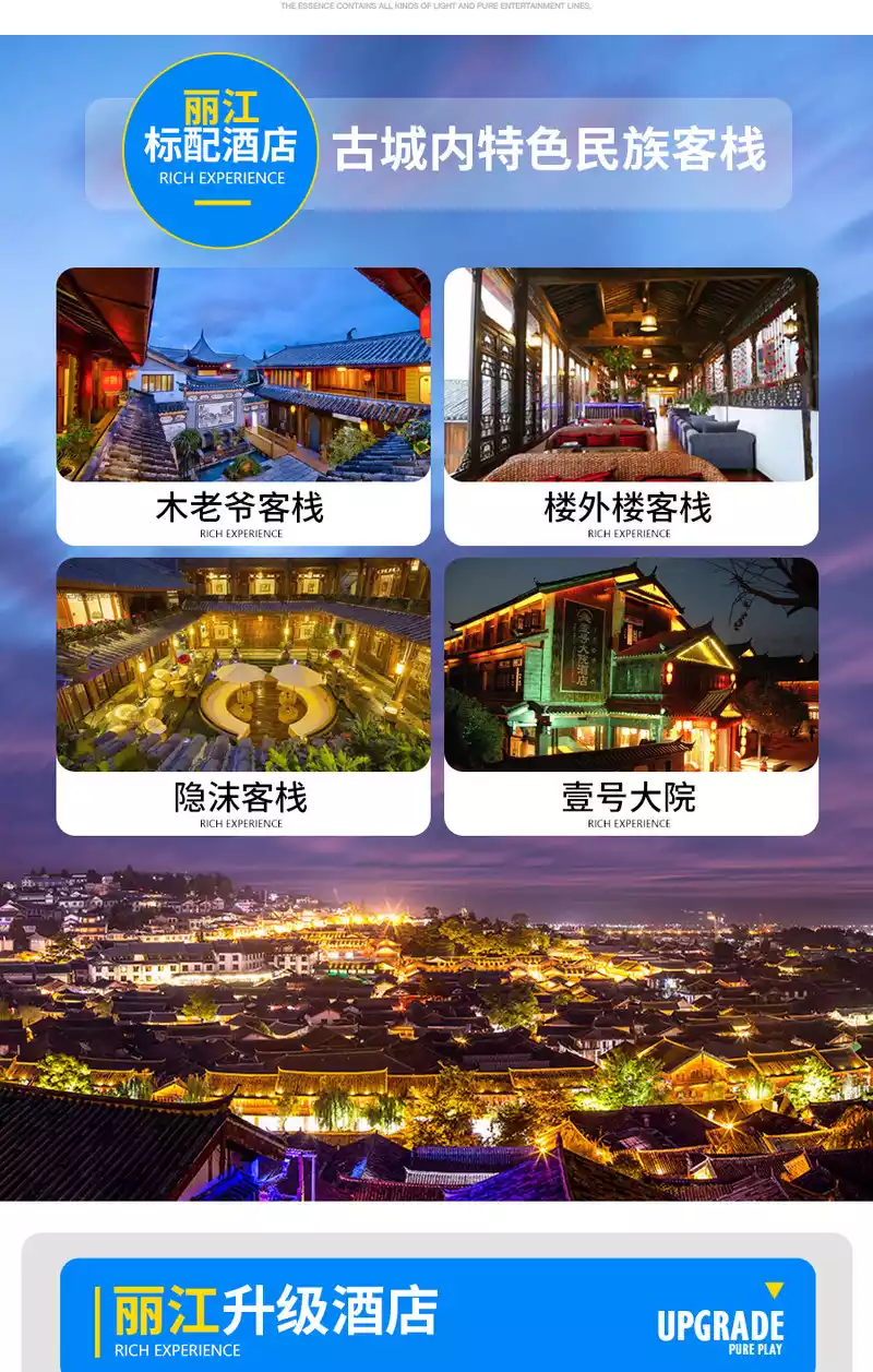 This is the end of the family's vacation to Lugu Lake, and then the driver and guide will accompany you back to Lijiang. After dinner, if the first night flight fails to visit Lijiang Ancient City, VIPs can go to Lijiang Ancient City without regrets. If you don't want to go to the ancient city of Lijiang, you can take a leisurely stroll in the business district outside the hotel to experience the night of Lijiang.