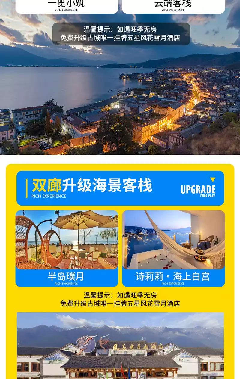 Hotel recommendations on the day: Peninsula Puyue, Shilili Sea White House (if there is no room in the peak season, free upgrade to a five-star hotel listed in Dali Ancient City) The price is similar, first of all, it is recommended that you stay in the double corridor;