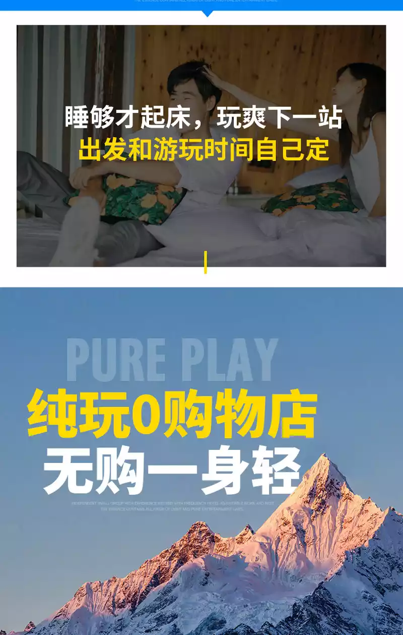 Today, there are more than 20 types of breakfast in the hotel, and after eating breakfast slowly, we will set off to see the sacred mountain of the local Naxi people - Yulong Snow Mountain. The national 5A-level scenic spot [Jade Dragon Snow Mountain] is called "Oulu" in Naxi, which means the most sacred "Tianshan" in the hearts of the Naxi people. And the most beautiful scenery is of course to take the most valuable [Glacier Ropeway] (from entering the mountain to taking the big ropeway, the recommended tour time is 4 hours) to the 4,506-meter glacier park. (Tips: In case of special circumstances such as flow restriction in the scenic area, ropeway maintenance or strong winds, the large ropeway cannot be arranged normally, and the difference is refunded to transfer to the Spruce Ping Ropeway to ensure that VIPs can visit the beautiful scenery of the snow-capped mountains.) Under normal circumstances, VIPs can also freely choose between Glacier Park or Spruce Flat. After the glacier park, you need to take the scenic environmental protection bus to the Internet celebrity holy place [Blue Moon Valley] (Blue Moon Valley battery car 60 yuan/person , please take care of yourself) to check in; It is as beautiful as a fairy tale, shaped like the moon, and the water is blue, comparable to Jiuzhaigou.