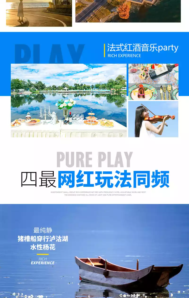 [Lugu Lake Observation Deck] (recommended visit time 0.5 hours) may be the best location for the most swiped panoramic photos of Lugu Lake, with a wide view, blue lake, blue sky, green tree-surrounded lakeshore and the beautiful Rig Peninsula, press the shutter. After sending the circle of friends, take a car to [Lover's Beach] (recommended tour time 0.5 hours), here, you will not be able to distinguish whether the blue is the sky or the lake in front of you. The shore stirred up waves one after another, and the water was yellow, but in the distance it was a deep blue color. The beautiful petals in the water ripple in the wind, full of an inexplicable sense of magic and romance.