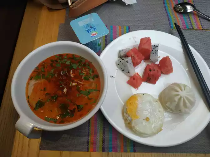This is my third time to Kunming. I like this city very much. Since we arrived a little early and the first bus was at 6 o'clock, I searched for a 24-hour Mai Yeye restaurant not far from the train station, ordered a bowl of preserved egg porridge and fried dough sticks, and took a break.