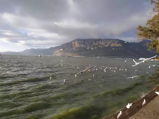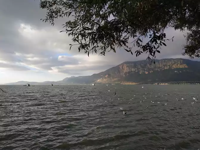 Kunming is located in the west, and the sunrise is quite late. It was still dark after 6 o'clock. However, there were buses. To be honest, I didn't know where I wanted to go. Since it was winter, I decided to go to Haigeng Park to see the seagulls first. It's a bit far, and it took more than an hour to get there. By then, it was already bright. There were very few people at Dianchi Lake in the early morning, which was nice.