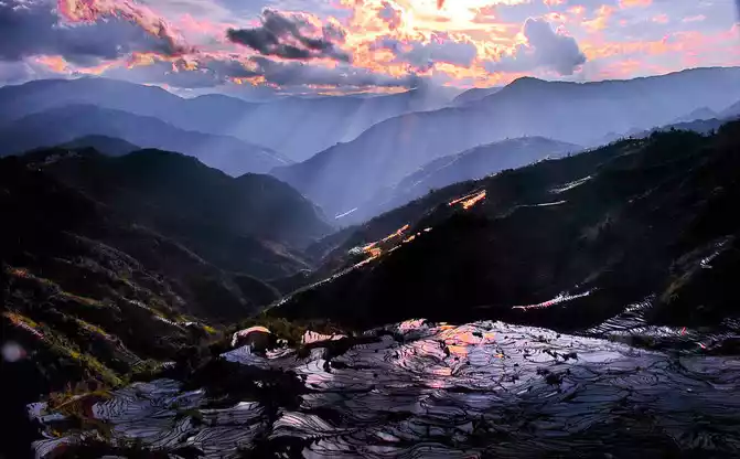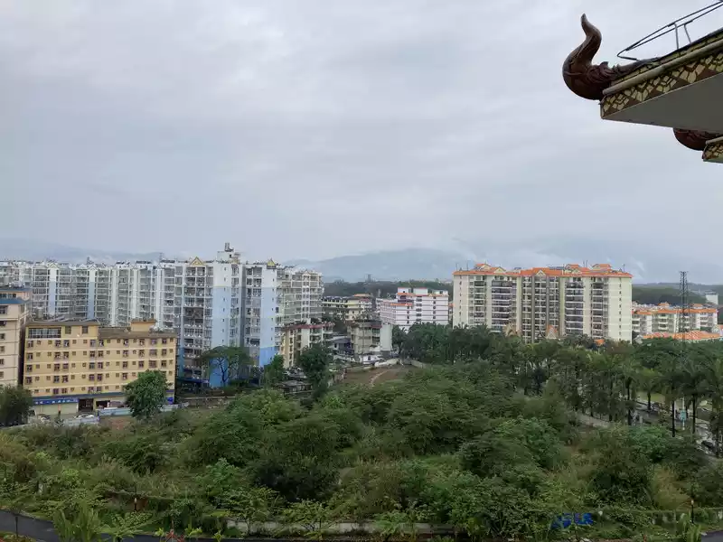 Jinghong is surrounded by mountains, the city is built in a small basin, and there are few high-rise buildings in the whole city, and it is rare to see buildings with more than 11 floors (why not more than 11 floors?). Friends who are engaged in architecture may know), this is a photo I took of standing on an 11-story building, and I can see the mountains stretching under the clouds not far away.