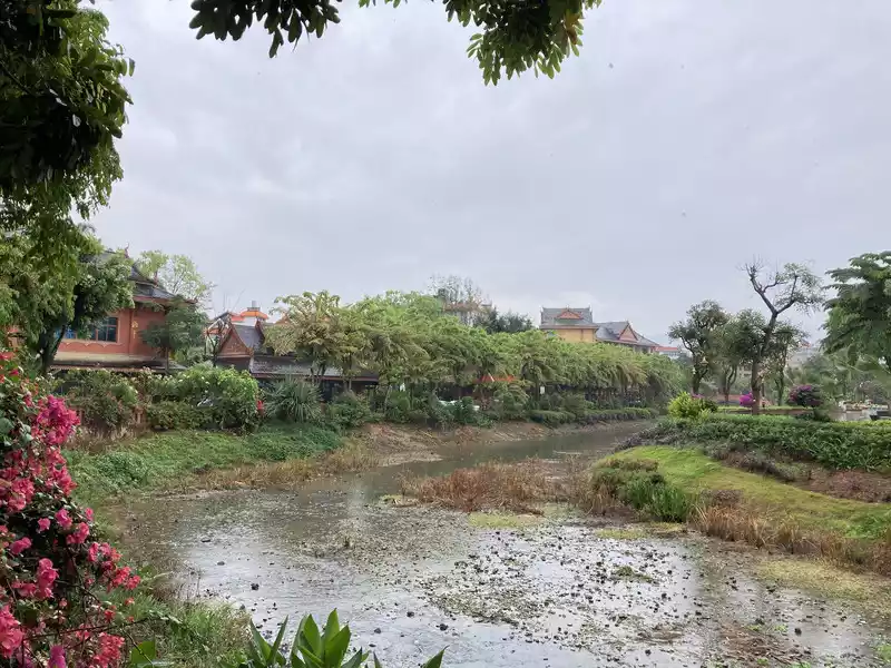 away In the western-central part of the city, there are three parks that locals visit every day, namely "Ethnic Customs Garden", "Southern Medicine Garden" and "Tropical Flower Garden", but unfortunately I didn't have enough time, so I didn't visit these three gardens. And on the edge of these three gardens, there is a stream that runs through the city, and I walk along the stream:
