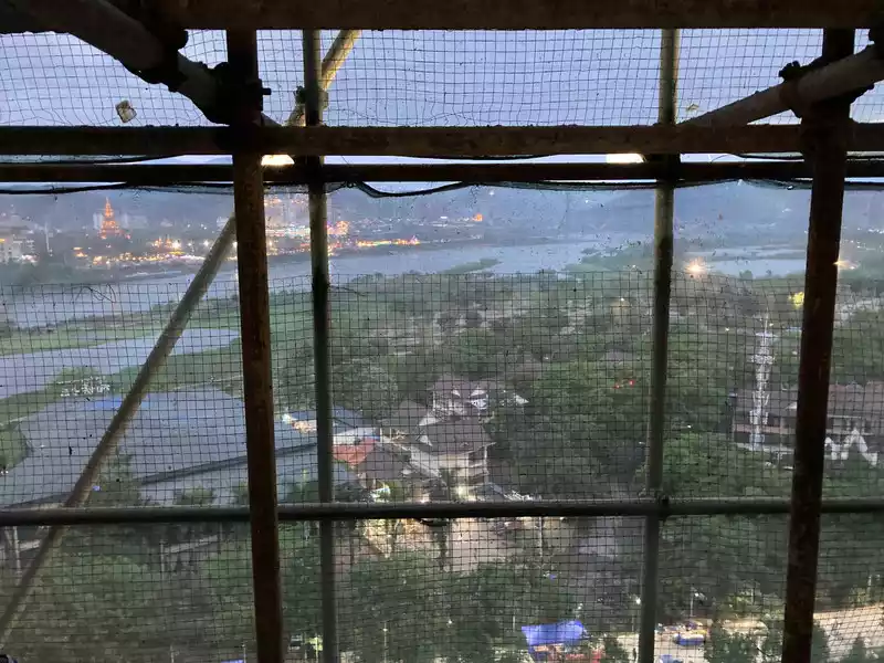 building is still under construction, and you can overlook the Lancang River from the south bank by taking the engineering elevator: