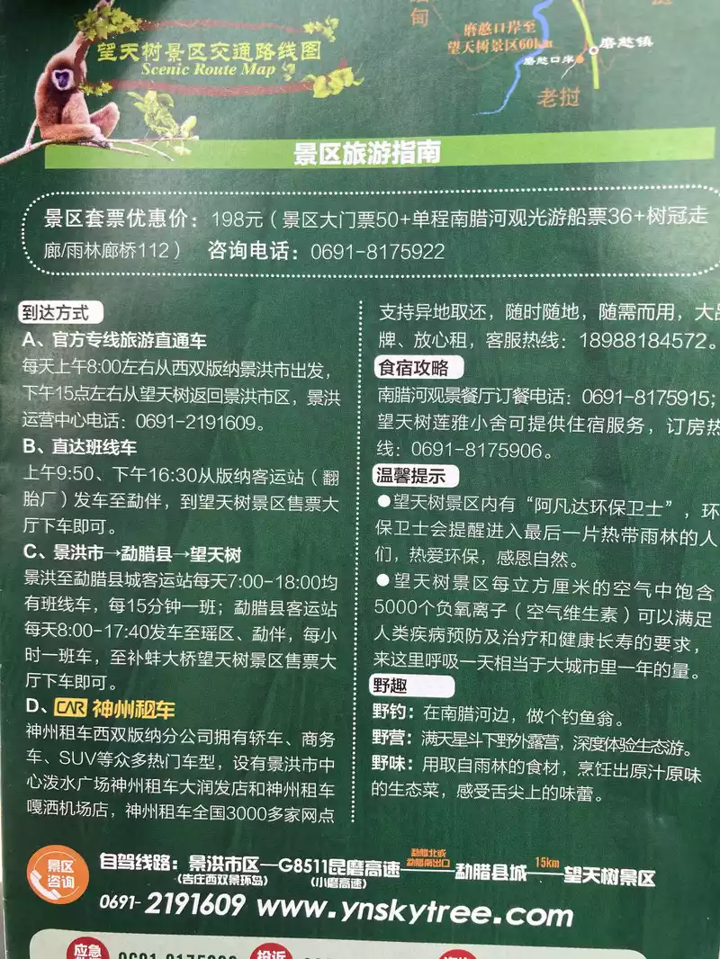 I contacted "Xishuangbanna Travel" by phone, they said that they could pick up people at the airport, and further confirmed that there was no value from Mengla to Wangtianshu after half past 8, if you went that night, the bus was gone, the taxi price was about 60, and if you took the bus the next day, the ticket was 9 yuan.