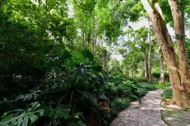 If you compare the natural rainforest in the eastern area of the Botanical Garden with the Manting Garden, you can see the obvious difference, that is, the plants in the natural rainforest grow more ostentatious and wanton, reflecting the "competition of things" (natural selection, survival of the fittest) in nature, and the survival of these plants is only for themselves, while the plants in the Manting Garden are selected and modified, and they are planted for the purpose of decorating and covering, so here we pay attention to the visual enjoyment and the function of covering.