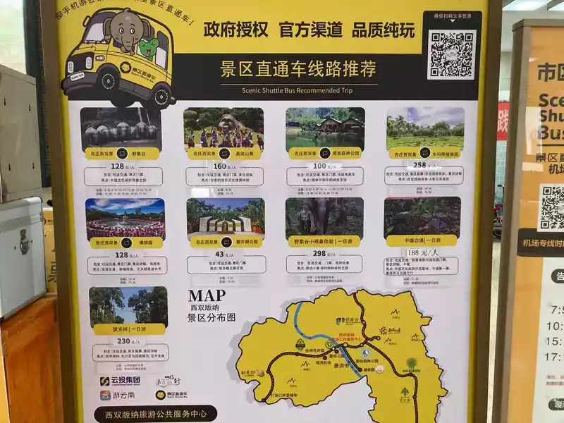 On the left side after entering the north gate is the tourist service center, which provides various scenic spots (such as: Wild Elephant Valley, Keno Cottage, Primitive Forest Park, Chinese Academy of Sciences Botanical Garden, Dai Nationality Garden, Manting Imperial Garden, Wild Elephant Valley Little Cute Elephant Experience, China-Myanmar Border, Wangtianshu) and airport through train services: