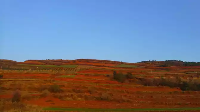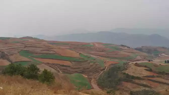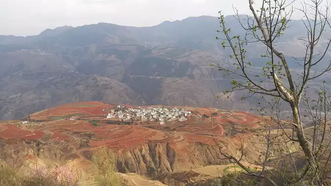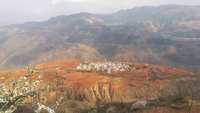 is about 200 kilometers from Yuanmou to Dongchuan red land. Among them, 170 kilometers of highways are very good, getting off the highway, and the road up the mountain is poor. Arrive at Score Hollow at noon. There are many B&Bs in Music Hollow, and there are several hotels. I found a restaurant for lunch. Then the tour begins.