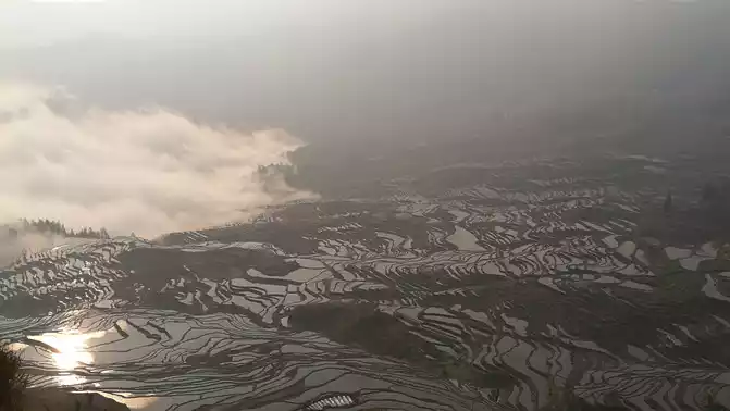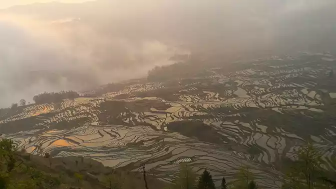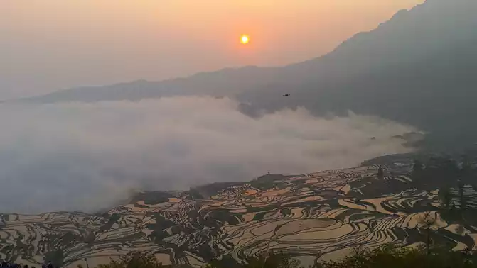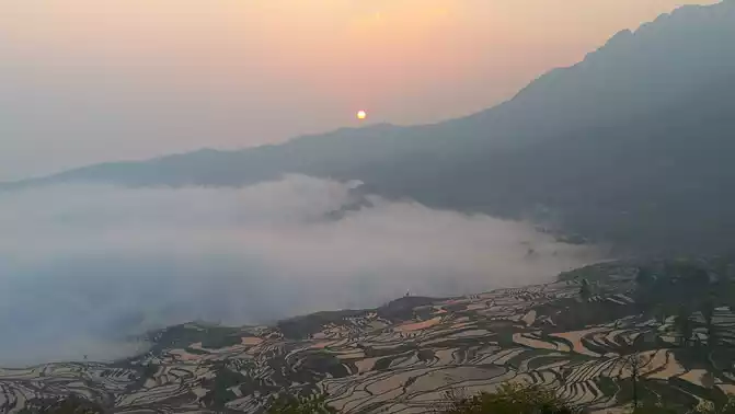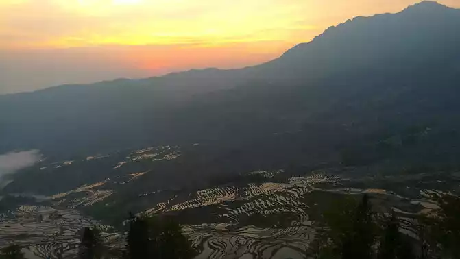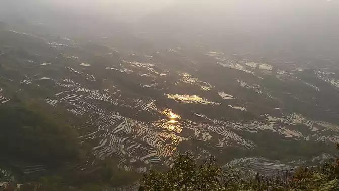 If you want to watch the sunset, there is a viewing place on the way to the Qingkou Terraces next to the Bada Terraces. You can see the same effect as the Bada Terraced Observation Deck, which is free! Yuanyang Terraces, only by looking at them do you know what is spectacular. To look at the terraces, one is to be in the irrigation season, and the other is at sunrise or sunset.