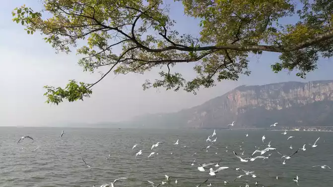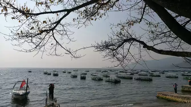 There are many scenic spots around Fuxian Lake, and we went to Luchong Scenic Area. This is a national 4A-level scenic spot. The scenic spot is very large, backed by mountains and facing the lake, and shady by ancient trees. There are Beacon Hill, ancient banyan trees, and many amusement projects. There are everything in it for dining, accommodation, and tourist shops. It's just that it's not the peak season yet, and it's not a weekend, so there aren't many tourists.