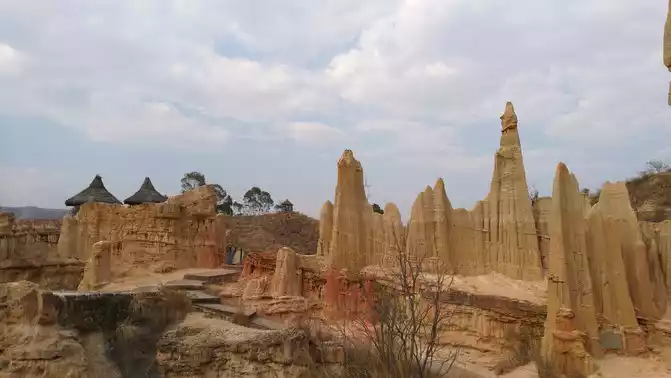 Kunming Changshui Airport is about 190 kilometers from Yuanmou. The whole journey was high-speed, a little over two hours, and at more than three o'clock in the afternoon, I arrived at the booked hotel. After a short rest, we went to the Wumao Tulin Scenic Area. The scenic spot is more than 20 kilometers away from the county seat. The best way to visit: take the scenic battery car to the top of the mountain, and then walk all the way to the exit of the mountain. The dense soil forest is similar to Bryce National Park in the United States, but the momentum is not so big and the color is not so red. The best time is at dusk at sunset. Unfortunately, we were a little weaker that day. Two hours of tour time is enough.