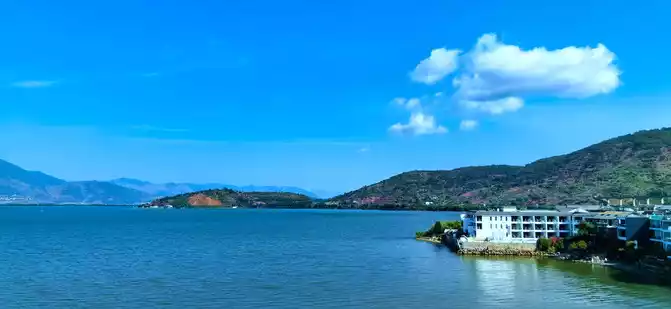 The three major lakes in Yunnan, Dianchi Lake, Erhai Lake and Fuxian Lake. To put it bluntly, Fuxian Lake is our country's largest water storage lake, the largest plateau deep-water lake, and the second deepest freshwater lake (the deepest freshwater lake in our country is Kanas Lake). With the rise of vacation tourism, countless holiday apartments, hotels, restaurants have been developed around the lake. We chose a first-line lake view vacation apartment. Sure enough, the invincible lake view. The lake water is blue and clear.