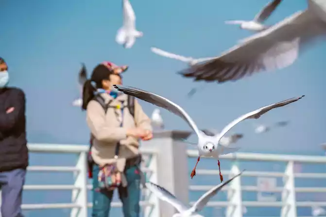 Watching thousands of seagulls flying all over the sky at Haigeng Dam, crossing the white traces in the blue sky, this seems to be a unique scenery of the "Spring City". These seagulls seem to be used to being fed by tourists, and as long as you raise your hand, there will never be a shortage of diners who eat overlord meals