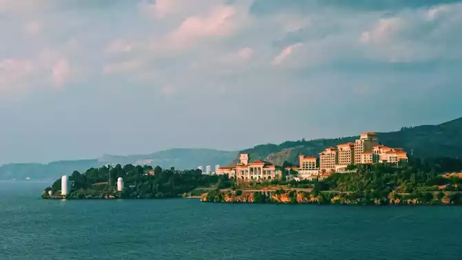 ▴ The starry sky town stands on the cliff, watching the lake into the sea, and the breeze is accompanied by the lake and mountains.