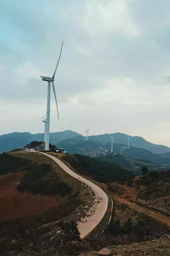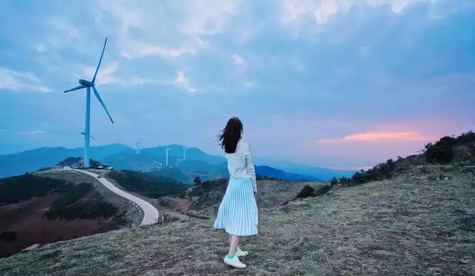 Arriving at the top of the mountain, catching up with a sunset Modou Mountain is a relatively niche place, so there are few tourists, and the nearby is the Modou Mountain Wind Power Plant, and the big windmills can be seen in the middle of the mountain. It should be mentioned that friends who come by car must remember to check the fuel gauge of the car in advance, because the nearest gas station is also dozens of kilometers away from the mountain... After we drove up the mountain, we found that the car was about to run out of fuel, and it was quite embarrassing to find someone to borrow fuel all over the mountain...... Don't ask me if I borrowed it, who will bring a tubing tool when they go out?