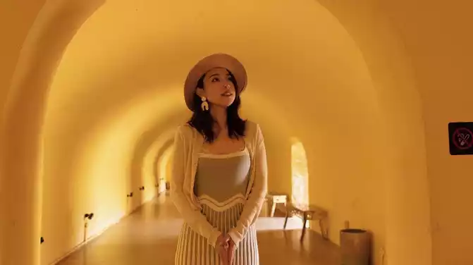👉 pink, yellow, white theme buildings, I also like yellow theme buildings, the end of the tunnel is the kiln prison café.