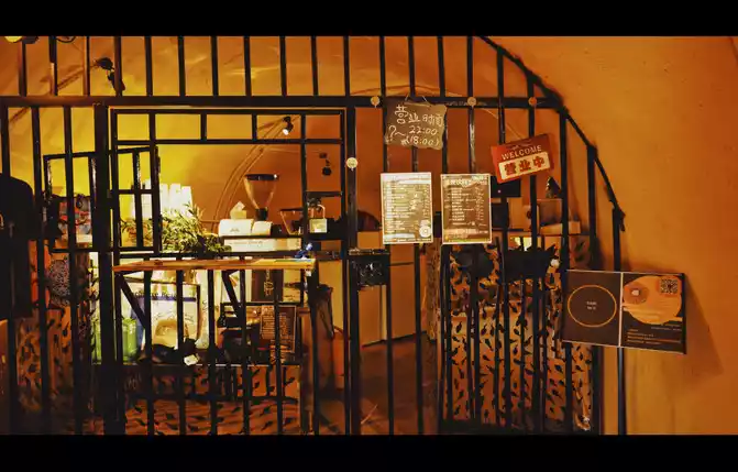 I also like the yellow-themed building, at the end of the tunnel is the kiln prison café, as you can see in the photo, the entire coffee bar is in a cage, the atmosphere is interesting and artistic.