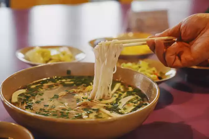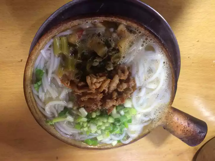 The restaurant here is not crowded in the off-season, and it is recommended by the locals Jianshui The famous grass sprout rice noodles crossing the bridge, the grass sprouts at this time are called ivory dishes, sometimes floating in the soup of the rice noodles crossing the bridge, sometimes stir-fried with meat slices, The texture is crispy and the taste is fresh.