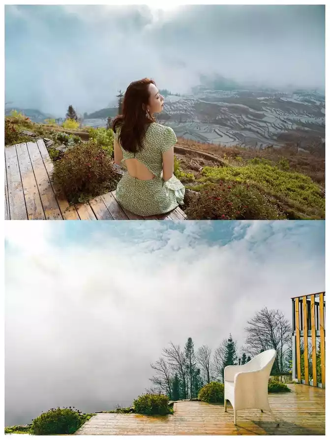 The homestay we stayed in was called "Huawowo Inn", which was run by a couple from Kunming with three cats. The location is very close to the sunrise location "Duoyi Tree" observation deck, and what you see is actually the same terraced field. The B&B is very suitable for taking pictures on the infinity terrace, and there is a feeling of looking down at the clouds in the early morning.