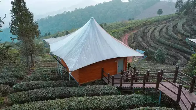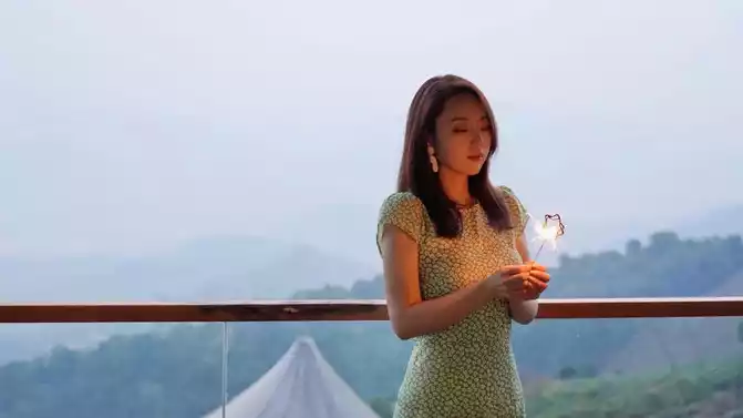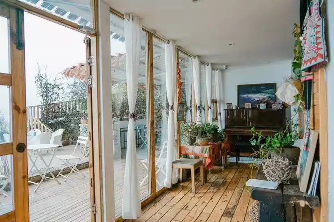 We live in a tent house, which is cheaper than a wooden house~ The view is the same as looking at the sunrise, and a fairy stick is placed on the oversized balcony~