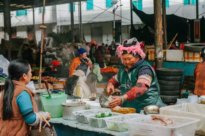 Sheng Village Collection, which is only available every Thursday, is a street in the village, mainly cloth, food and other daily necessities.
