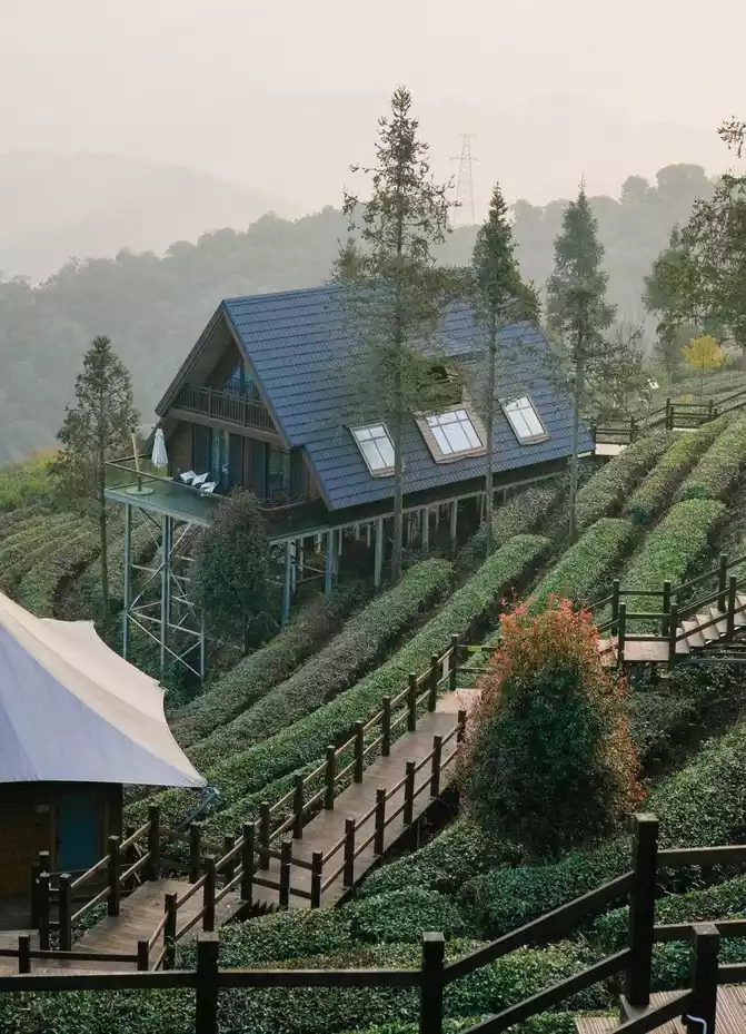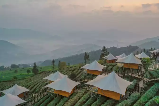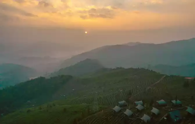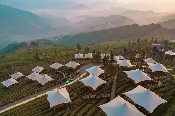 To end the trip in Yuanyang, prepare to drive to Pu'er is the longest part of this trip, the whole 450 kilometers need to be driven in 6.5 hours. After breakfast, we set off. The last night of our stay in Pu'er was a hotel located on a tea hill, Pu'er Yixiangshan Camp & Mid-Levels Hotel. One of the major selling points of the hotel is that it has thousands of acres of tea mountains, the top of the clouds, and all rooms can see the sunrise outside the balcony when lying on the bed.