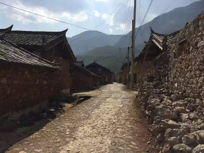 Shuhe Ancient Town is located in Shan'a, with rocks paved and bumpy, hardwood as walls, tiles as roofs, houses staggered, and forms.