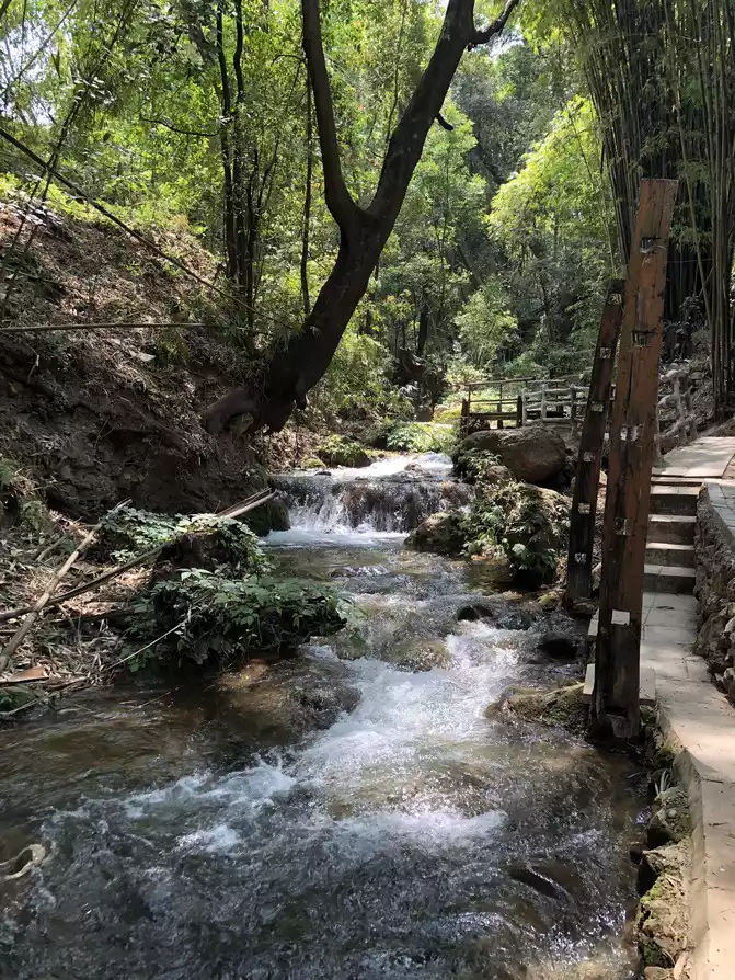On the way back to Lizhou, I occasionally passed through the ancient tea horse road, and the three streams merged with the land, which the locals called Maojindi, or Sangu Water. Tickets are 40 yuan for battery cars. In the prime of life, people can do it themselves without having to take a car. It winds down the mountain, with sparse visitors, clear springs flowing through winding streams, and ancient trees leaning against deep cliffs.