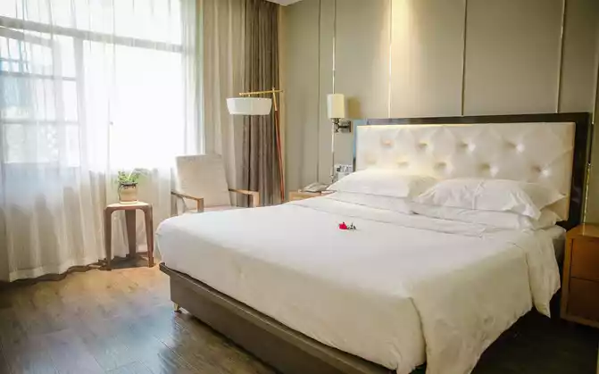 Pack your bags and move in, push open the door, in the simple and comfortable indoor environment, the beige sheets have a warmth, the touch is soft, and every inch of skin is ironed, making people can't help but want to lie on the bed and have a good night's sleep.