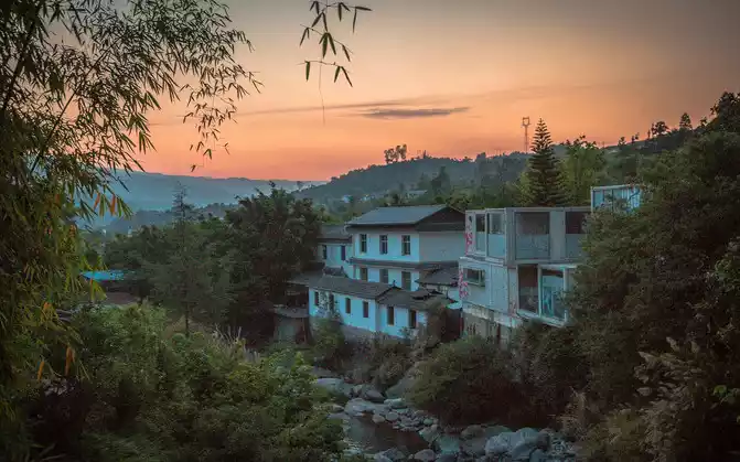 There was also a shelf crawling with vines in the deadwood fortress, covered with red ribbons of blessings, swaying gently in the breeze. Sometimes there are locals leading cattle walking slowly next to it, which is a leisurely holiday scene.