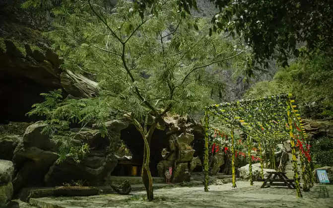 Among the dead wood are tables and chairs for visitors to rest and small shops offering drinks and food, perfect for regrouping and hitting the road again after a while. There is a sense of adventure when shuttling between the dead woods, especially when looking out from the gap in the light of the dead wood, listening to the sound of birds chirping and the rustling of walnut trees outside, it is very interesting, making people just want to take a break in this lazy afternoon, and their hearts are filled with inexplicable peace and quiet.