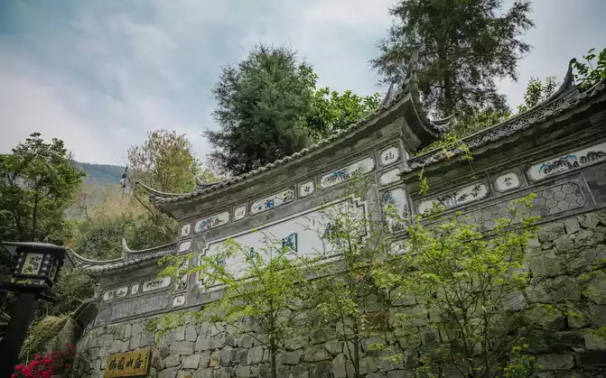 Yang Younan, a local gentleman in the Qing Dynasty, had a poem saying: "The stone gate leans against the back of the cangku, and the steep wall is lush and the screen is arranged." Steep and dismantled twin peaks stand tall, with different peaks opening up like screens. It is difficult for wild birds to fly through the forest, and the monks who pedal around the mountain seem to return. The
