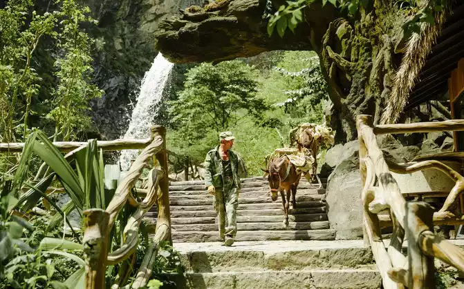 Dali Cangshan Shimenguan Tourist Resort is a national 4A-level tourist attraction, located in Cangshan West Town, Yangbi County, Dali Prefecture. Shimenguan is a famous historical tea horse road, Bonan ancient road, salt rice ancient road and Yunnan-Burma highway, with ancient temples, ancient pagodas, ancient cliff paintings, ancient plank roads, and Buddhism, Taoism and Islam.