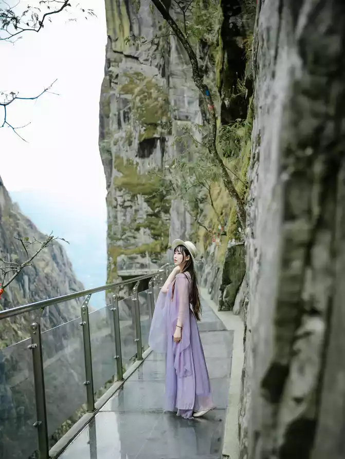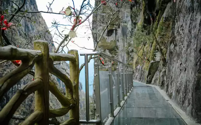 Shimen Ladder Ancient Plank Road goes straight up through the wall, winding and spiraling, with a total length of 1550 meters, including an 82-meter glass plank road, It is 12 meters more than the first brother of Zhangjiajie in the glass plank road world.