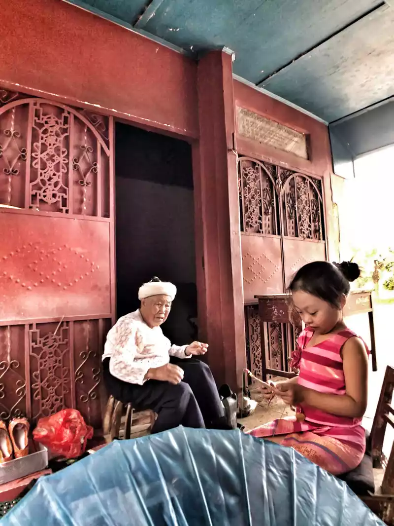 At the entrance, we encountered a spirited Dai grandmother, her handicrafts displayed nearby.